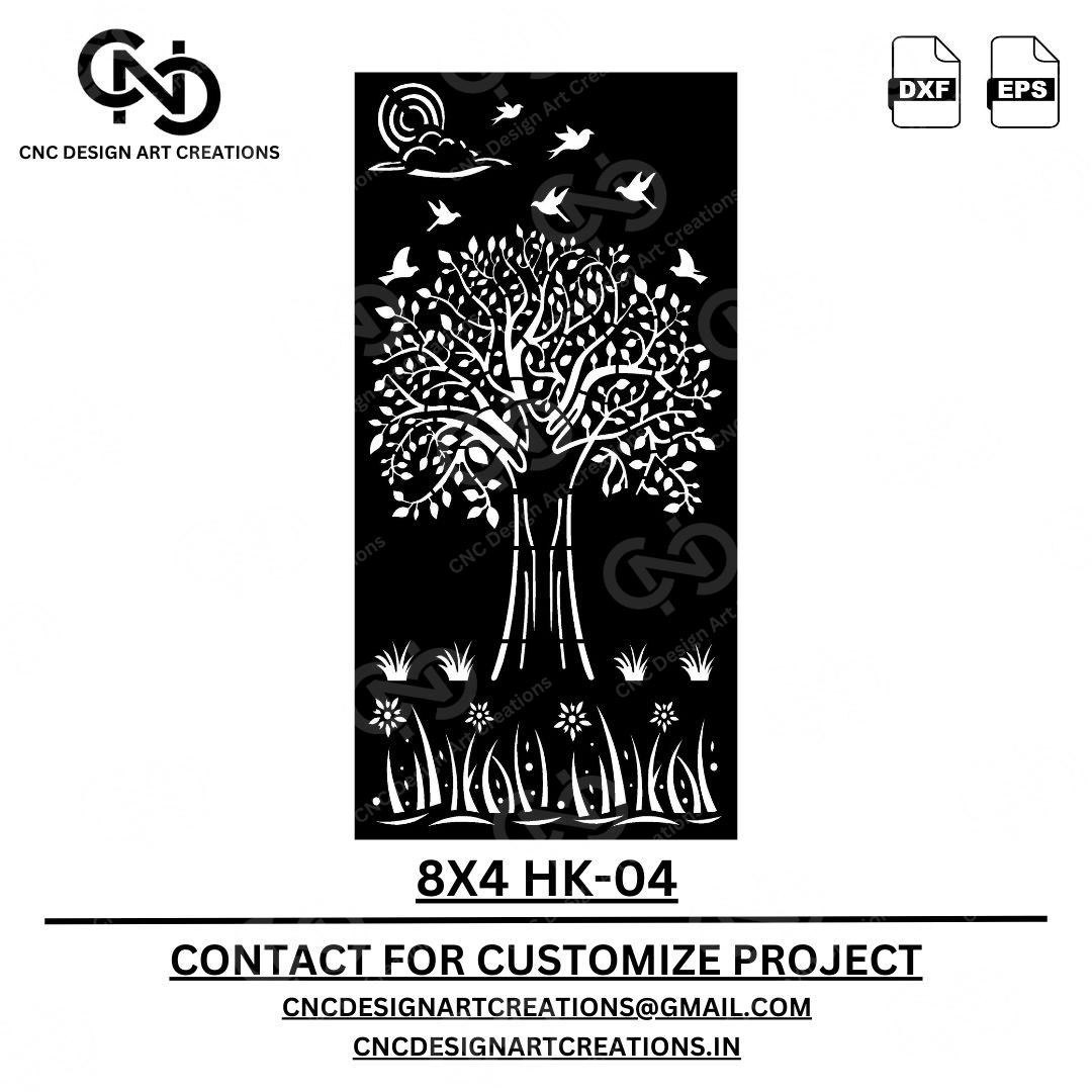 2D CNC Jali Cutting Design Cut Work DXF EPS Download Files Size ratio 8X4-HK-04