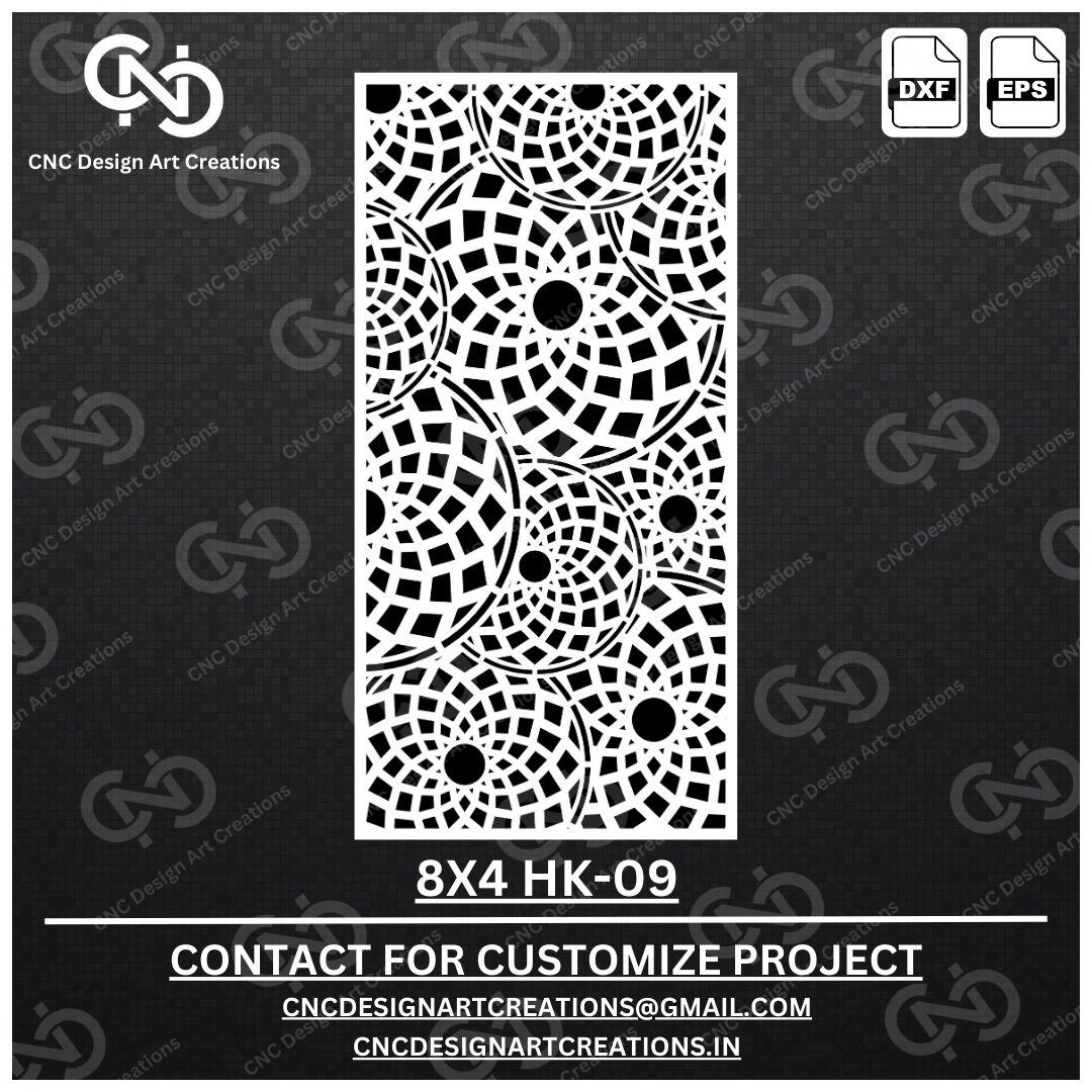 2D CNC Jali Cutting Design Cut Work DXF EPS Download Files Size ratio 8X4-HK-09
