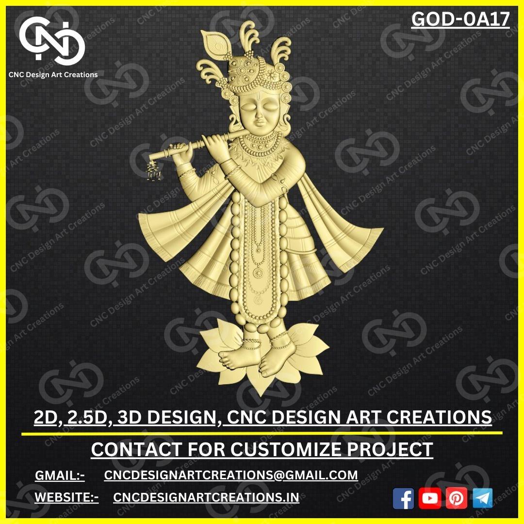 Krishna ji 3D CNC Design Artcam Relief & STL File Digital Download GOD-OA17 CNC Design Art Creations