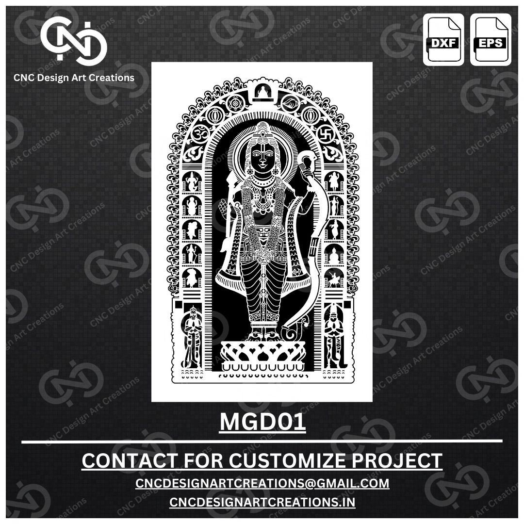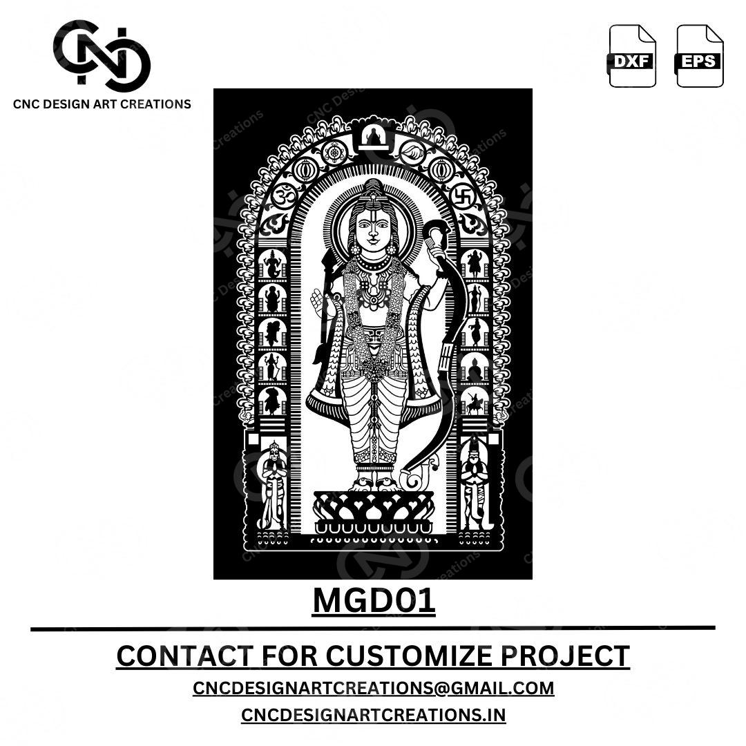Shri Ram Lala 2D CNC Cutting Design Cut Work DXF EPS Download Files Size ratio MGD01